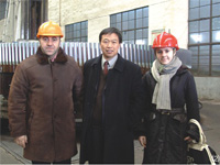 公司董事长总经理王家安(中)陪同巴基斯坦LUCY水泥有限公司领导层考察本公司生产现场,并签订了日产3000吨回转窑生产线设备供货合同